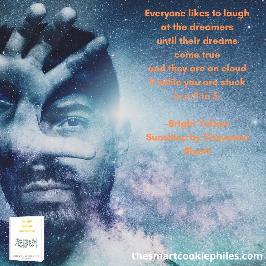 Yet, if you need a lift, some water for your dry and desolate human soul, read Bright Yellow Sunshine by Cheyenne Bluett.